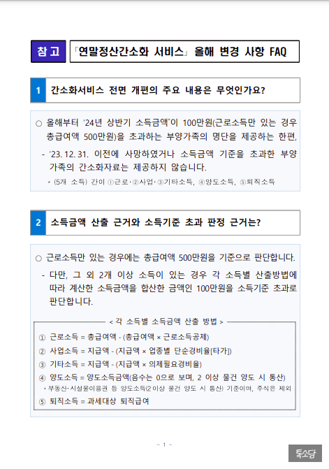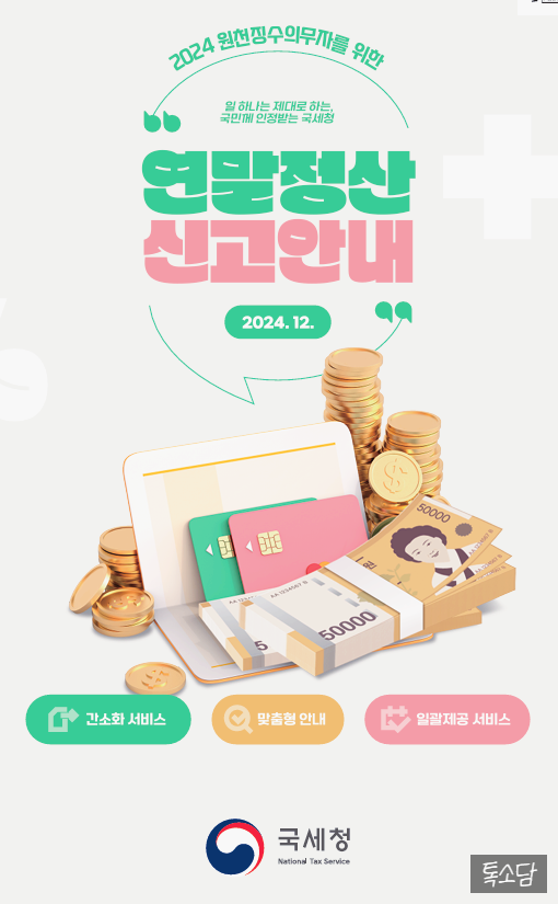 실제 연말정산 진행 시점 (다음 해 1~2월)에는 국세청 공지 및 회사 인사/총무 부서 안내를