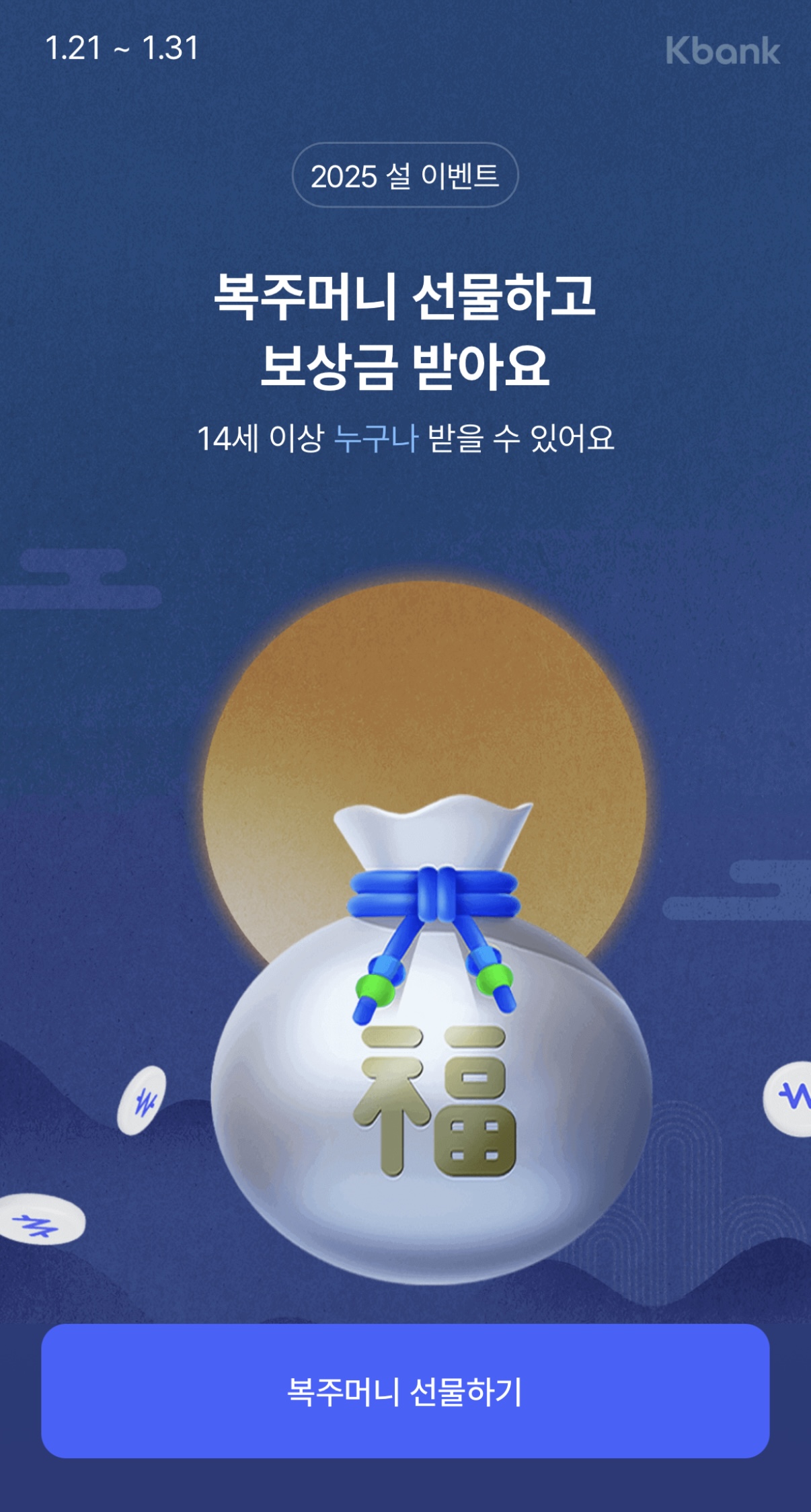 이벤트가 많이 눈에 띄더라고요. 오늘은 그중에서도 케이뱅크 어플에서 진행 중인 '복주머니' 이벤트에 대해 이야기